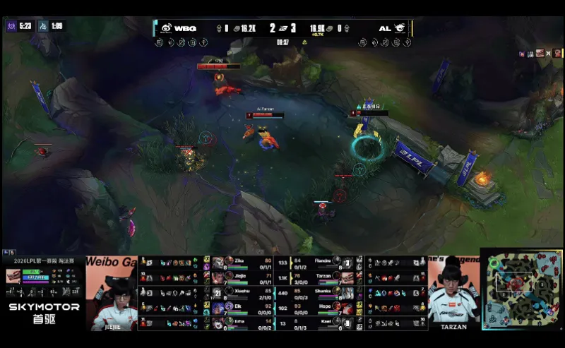 23分钟,WBG中路发难,突进越塔击杀AL双C