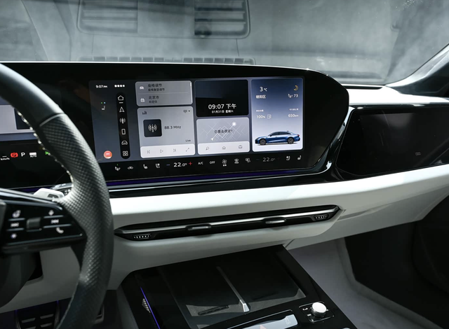座舱方面,11.9英寸仪表+14.5英寸中控+10.9英寸副驾屏的三屏组合,环抱式设计终于告别了老款的沉稳商务风 。车长5142mm、轴距3066mm,尺寸全面超越老款,后排独立控制屏、B&O音响、电吸门都给到位 。
